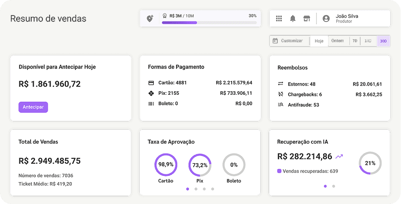 Tecnologia antifraude com análise em tempo real para reduzir riscos e aumentar a aprovação das vendas.